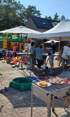 Op 10 juni hebben wij van 14.30 tot in de late uurtjes een heel gezellig buurtfeest met elkaar gehouden. Er waren ongeveer 30 mensen gedurende de hele dag aanwezig. Kinderen hebben zich vermaakt met het springkussen en de grote speelblokken die we gehuurd hebben. Vanaf 16.30 hebben we gezamenlijk genoten van een gezellige barbecue.