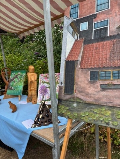 In de marktkramen hebben verschillende buren hun interesses uitgestald. Zo waren er door buren gemaakte beelden en schilderijen, maar ook een kaart van alle gelopen marathons.